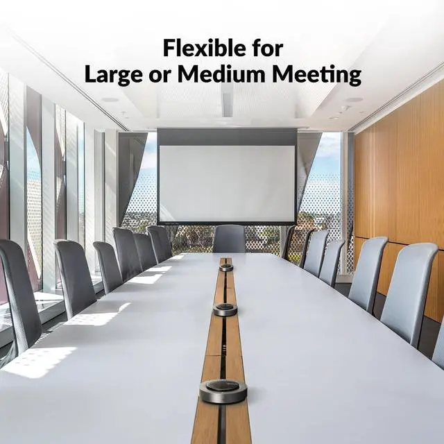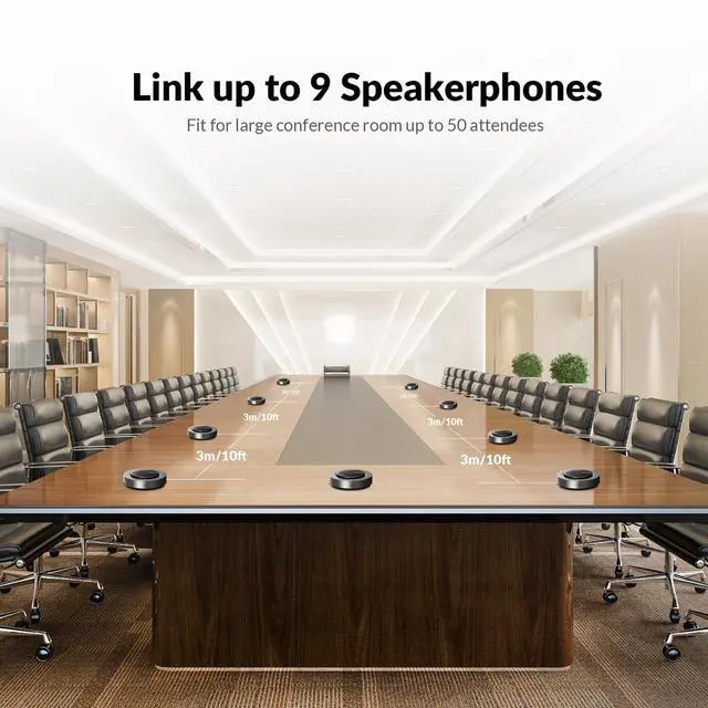 Lager Meeting Space: With 9 speakers cascaded together, all attendees (up to 50) in a large meeting room can hear every word clearly and synchronously. And each unit is built with 4x mics, which ensure omni-directional voice pickup in the entire meeting space. ^^