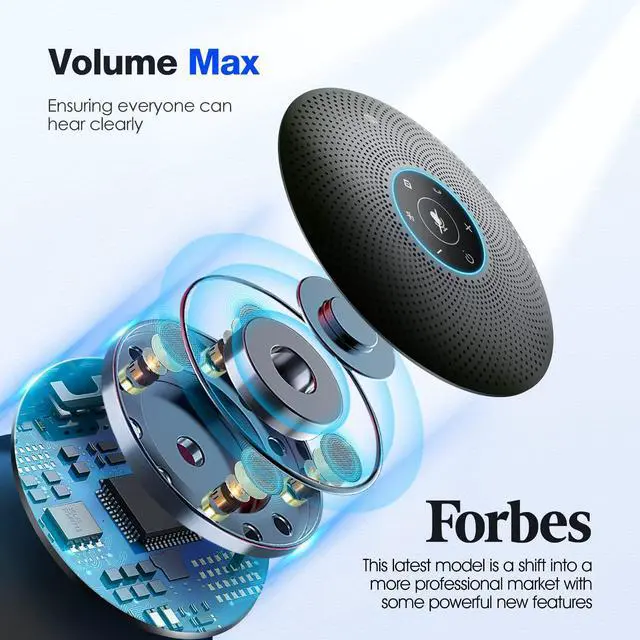 Level Microphones: EMEET M2 Max supports meetings with 1-15 attendees. It comes with 4 10 directional microphones, whose sampling rate could reach 48kHz, which is often used in movies, DVD and professional audios, meeting users HD voice requests. Volume changes and voice could be recorded more finely, leading to a new level of voice pickup. M2 Max conference room omnidirectional microphone provides users stunning voice transmission to the utmost extent. ^^ Daisy Chain & Loud Speaker for