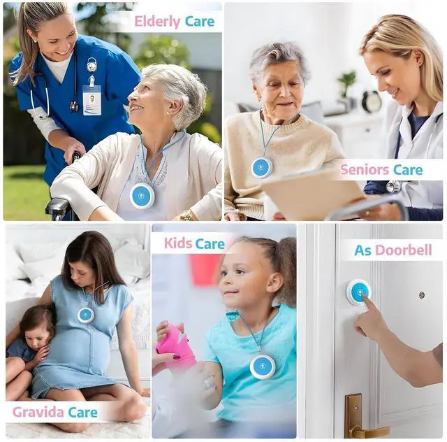 ^^ Portable & Long-Lasting - Built for everyday use, the wireless call button is splash-proof and can be worn comfortably as a necklace, carried in a pocket, or mounted on a wall. With a battery life of up to 1 year (based on 15 presses per day), this small call bell provides long-lasting reliability without frequent battery changes.