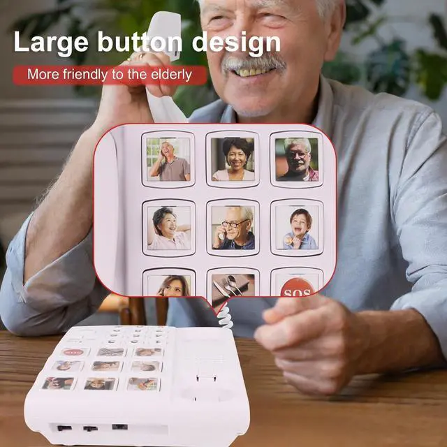 ONE-TOUCH DIALING: Our landline phone with picture can record 9 groups of numbers, including 8 custom picture dials +1 SOS dials, convenient speed dials for seniors with poor memory and quick calls for emergency ^^