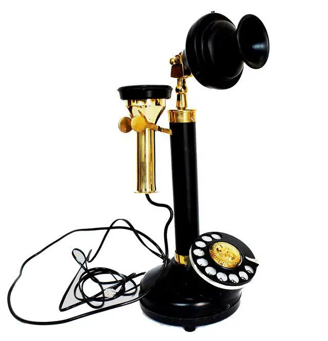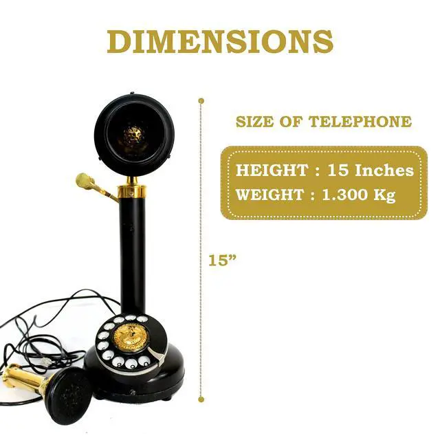 ^^ Functionality: functional but not accurate because it has been made with original parts like ringer dialer and wiring set - Sometimes does not work with modern phone connections. ^^ Connector - RJ11 ( Globally accepted standard landline phone jack ). We recommend you to buy this for home & office decor, collectible collection, vintage ^^ It typically consists of a brass stand resembling a candlestick, with a cradle on top to hold the handset. The phone's body, including the receiver and transmitter, is usually made of brass as well. ^^ Retaining the old fashion shape and use of the old dial way to meet the needs of the retro family or places. Suitable for families, offices, luxury homes, star hotels, galleries, jewellery firms, ^^ This high quality retro telephone is ideal for the home, office, hotel or other places. Not only the practical but also can as an ancient decoration
