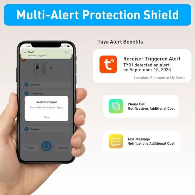 SanJie Tuya Wireless Caregiver Pager- Taking Better Care for Your Loved One More EasyLife Alert Systems for Seniors No Monthly FeeThe call system includes plug-in model receiver and wireless call button, there is no monthly fee for our mobile app notification, if you need SMS or phone call notification, you need to subscribe extra. Fall Alert Devices for ElderlyWhen an elderly, dementia, sick or disabled person at home accidentally falls, or needs help, just press the button, family members or caregivers can provide timely help.