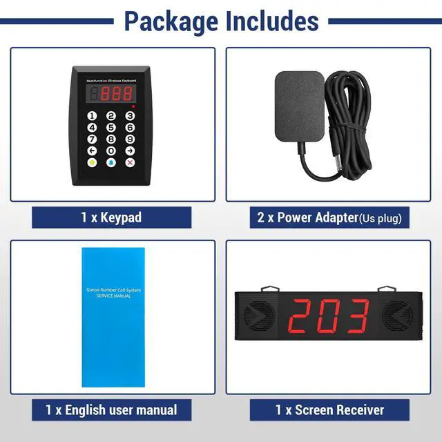 ^^ Multiple Placement Use: Restaurants, churches, cafes, food trucks, hospitals, and more. Our Queue Calling System can also connect one keyboard to multiple screen receivers, or multiple keyboards to the same screen receiver, making it suitable for a variety of situations. ^^ Plug and PlayNo WiFi required. Pairing is done at the factory, and you can also re-pair according to the manual.