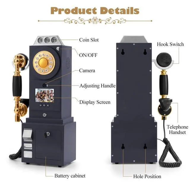 • Vintage Video Audio Guestbook: Fashioned in the style of an vintage replica pay phone, the video guest book phone has exquisite, stylish appearance, functions as an audio guest. No language barrier caters to every guest. Every message is a precious souvenir. You can hear these most memorable voicemails forever.