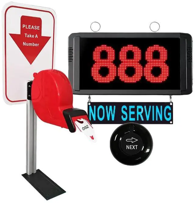 Package Includes: 1 x Host display1 x Call Button (Another one FREE for Sparing) 1 x Power adaptor1 x Ticket Dispenser Stand1 x Remote Control1 x