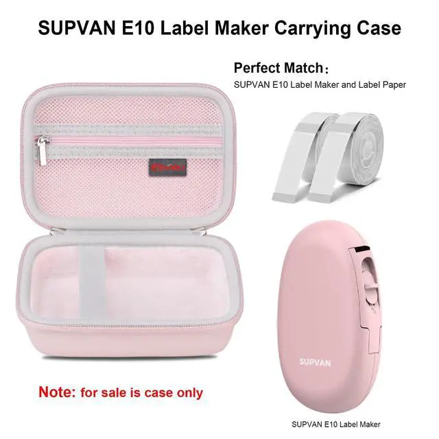 • Specially Designed for SUPVAN E10 Bluetooth Label Maker Machine--This portable bluetooth mini label printer carrying case is specially designed for supvan e10 bluetooth label maker machine. Internal space 1:1 build, perfectly fit for supvan e10 label maker. extra mesh pocket for label paper, sticker rolls, charging cables. (CASE ONLY! supvan e10 label maker not included)