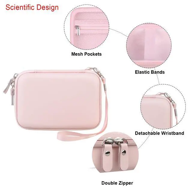 Elonbo Carrying Case for SUPVAN E10 Bluetooth Label Maker Machine, Portable Mini Thermal Label Printer Storage Holder, Wireless Small Handheld Sticker Maker Travel Bag, Pocket Fits Paper, Pink+