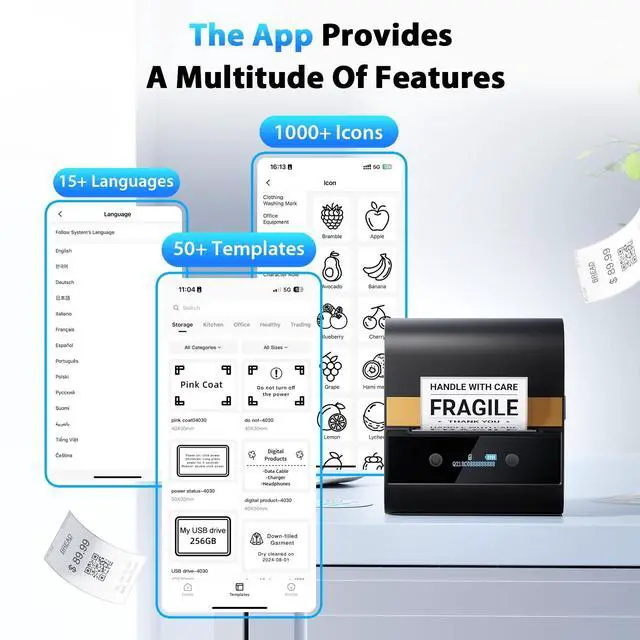 Multifunctional App: This address label printer is compatible with the Print Master App. The app includes a variety of features such as text, images, barcodes, QR codes, OCR, forms, thousands of icons, and numerous pre-made templates for both business and home use. The Ponek barcode label printer improves your efficiency in work and life