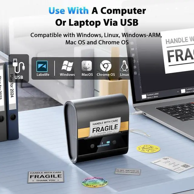Compatible with Multiple Devices: This Bluetooth label maker machine is compatible with most mobile phones and computer devices. When using a smartphone, you need to connect to the app via Bluetooth and is compatible with both iOS and Android systems. When using a computer, you need to connect with a USB cable an