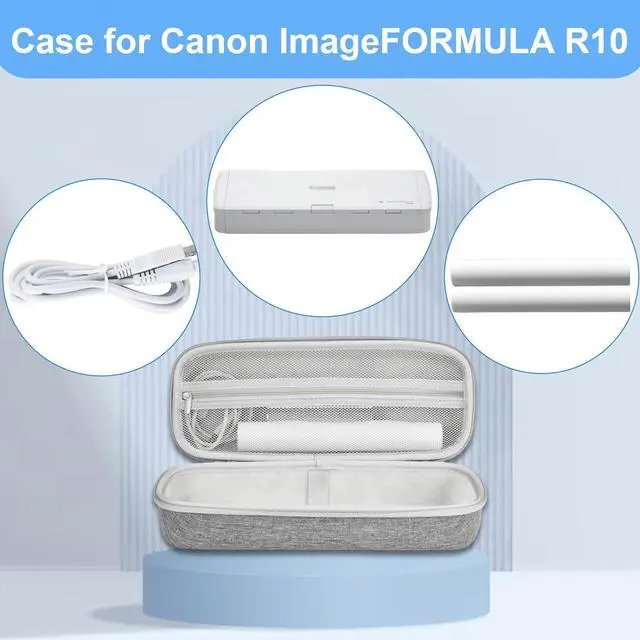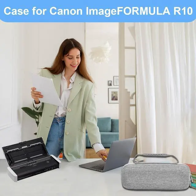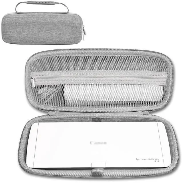 Scanner: Tailored to snugly fit the Canon imageFORMULA P-215II / R10 Mobile Document Scanner. Measures 12 in x 4.7 in x 3.6 in outside and 11.1 in x 3.5 in insidejust the right size to keep everything secure. ^^ Tough and