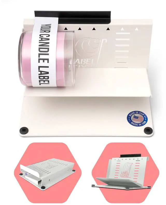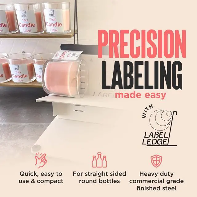 Label Round Vessels Easily - This manual labeling machine is a must-have for precise label applicator for bottles and jars, the perfect small business label applicator machine 0.5" -5" adjustable range ^^ Give Your Products an Exacting Look - Use your label maker for candle jar / bottles and the Label Ledge to give your products a professional look. Designed for candle makers, vintners and brewers ^^ Easy-to-Use Tool - Whether youre using a label maker machine with tape or spool/ this device needs no adapters. Its a must-have tool for makers of jelly candle, jam, wine, beer, & more! ^^ Easy-to-Store Label Applicator - Sleek, dishwasher-safe & made of powder-coated steel, it can be disassembled easily.