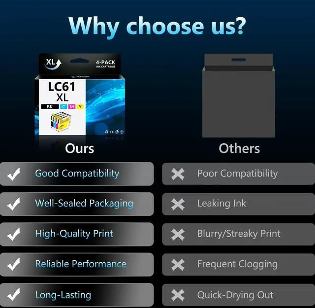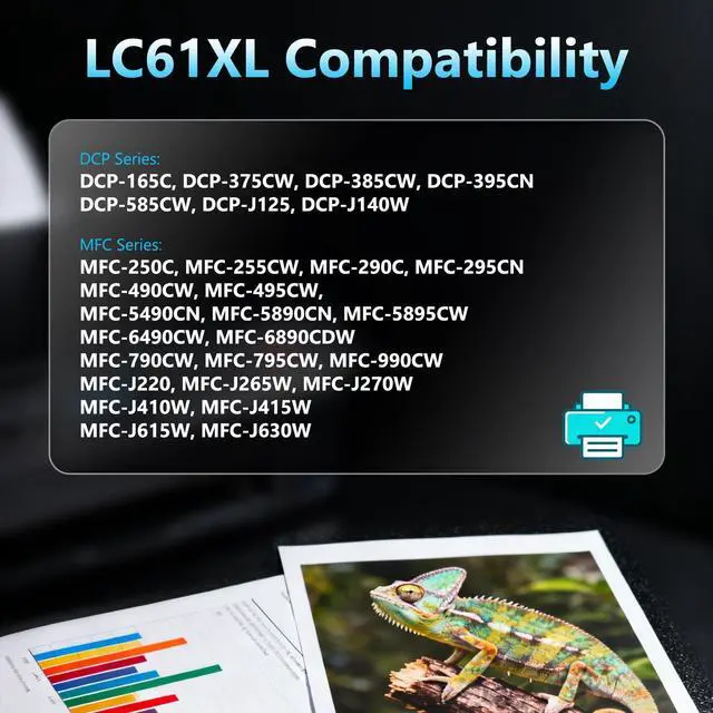 Includes: 4 Pack for LC61XL ink cartridges(1 x Black, 1 x Cyan, 1 x Magenta, 1 x Yellow)