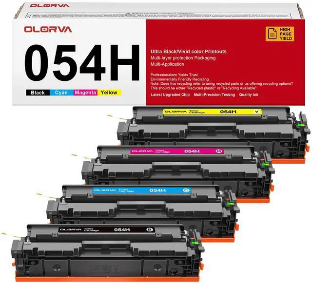 What's in the box: Total 4-Pack 054H toner replacement for Canon 054 toner cartridge set. Package Includes 1 X 054H Black Toner Cartridge, 1 X 054H Cyan Toner Cartridge, 1 X 054H Magenta Toner Cartridge, 1 X 054H Yellow Toner Cartridge and 1 X User Guide ^^ 2.