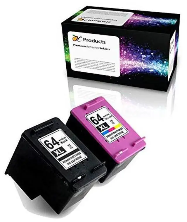 OCProducts remanufactured HP 64XL 2 pack ink cartridge replaces HP 64 and HP 64XL ink cartridges.