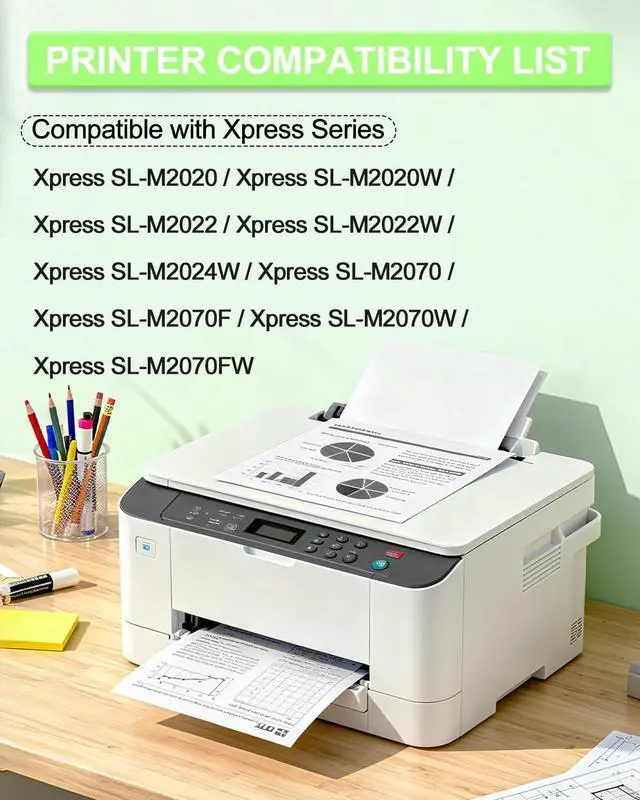 Samsung Printer: Xpress SL-M2020 / Xpress SL-M2020W / Xpress SL-M2022 / Xpress SL-M2022W / Xpress SL-M2024W / Xpress SL-M2070 / Xpress SL-M2070F / Xpress SL-M2070W / Xpress SL-M2070FW Printers. ^^ Our cartridges are made of quality materials: toner powder, smooth OPC & roller, smart ship and industrial grade packaging. Make your presentations and printouts stand out with GREENCYCLE toner cartridge that produces clear, crisp, bold, and eye-catching text and graphics.
