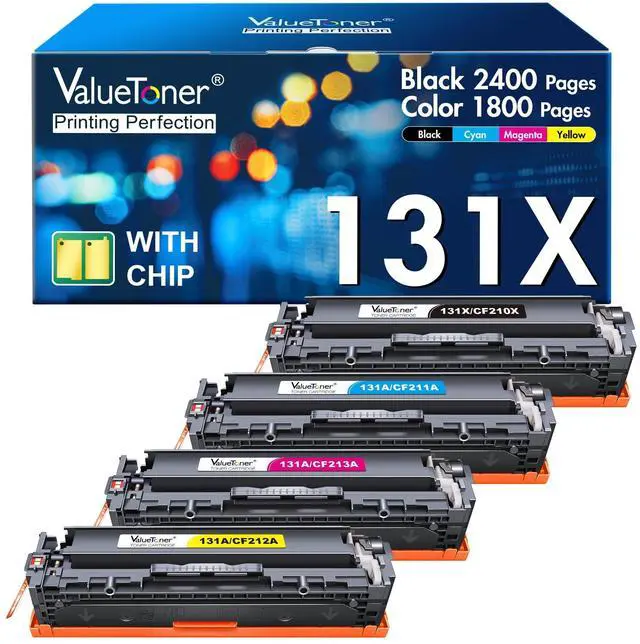 Contents: 4 pack 131A 131X toner cartridges replacement with HP 131A 131X CF210X CF210A CF211A CF212A CF213A toner cartridge.