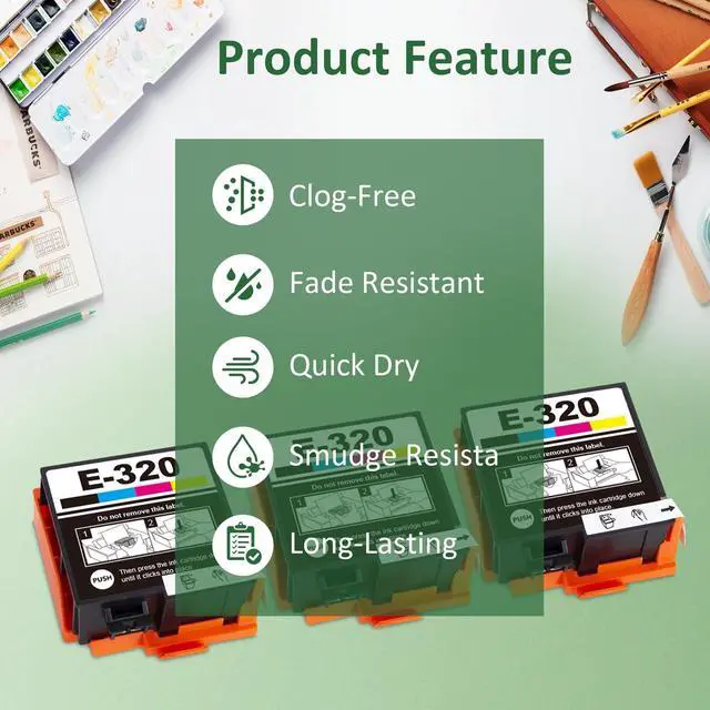 ^^ Easy InstallationThe Remanufactured T320 ink cartridge features an easy-to-install design, so you can replace ink cartridge quickly. Please remove the tape before installation. ^^ After-sales serviceYour satisfaction is our greatest hope. If you encounter any problems, please contact us in time and we will do our best to solve them for you.