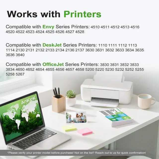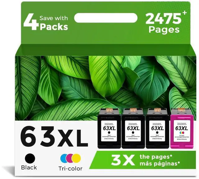 Package includes 3 pack of 63XL black ink cartridge and 1 pack of 63XL tricolor ink cartridge ^^ Compatible with Envy 4510 4511 4512 4513 4516 4520 4522 4523 4524 4525 4526 4527 4528 Printer ^^ Compatible with DeskJet 1110 1111 1112 1113 1114 2130 2131 2132 2133 2134 2136 2137 3630 3631 3632 3633 3634 3635 3636 3640 Printer ^^ Compatible with OfficeJet 3830 3831 3832 3833 3834 4650 4652 4654 4655 4656 4657 4658 5200 5220 5230 5232 5252 5255 5258 5267 Printer ^^