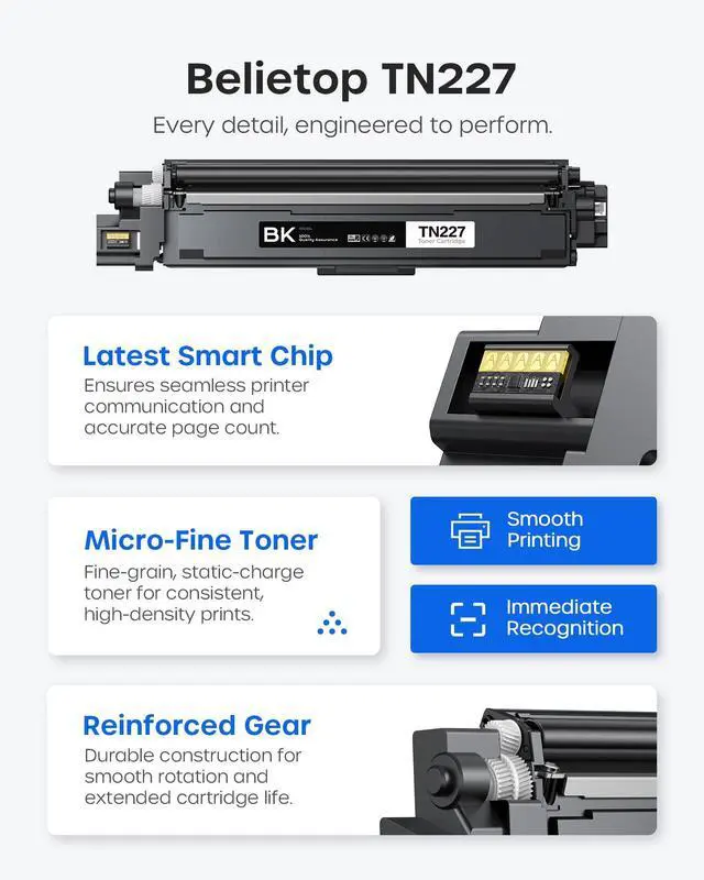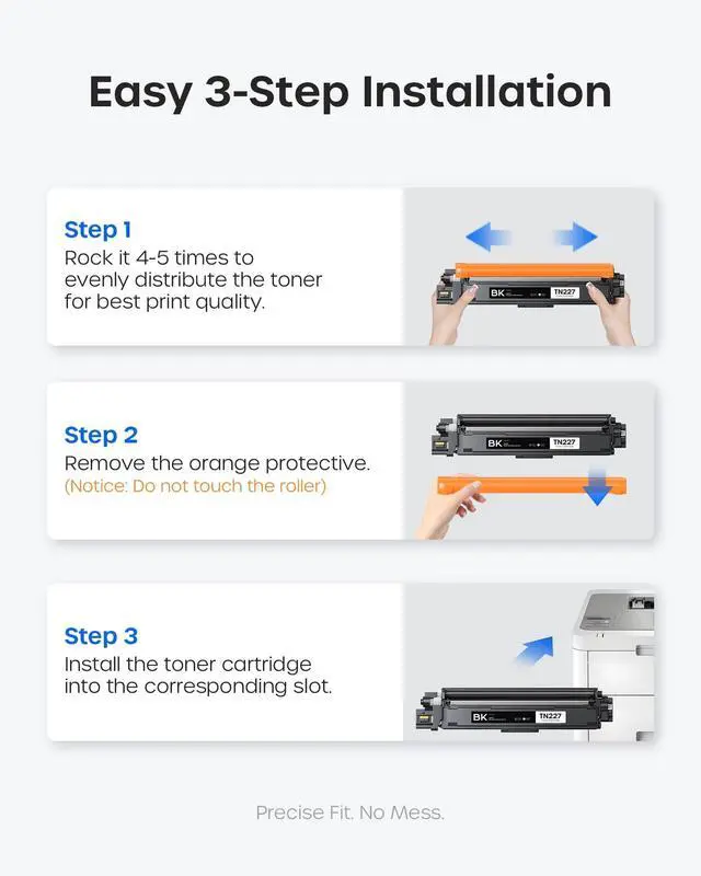 ^^ Warm Tips: If your printer is showing "No Toner" "Cannot Detect" or "Cartridge Error" after Installing the compatible TN 227BK/C/M/Y Toner, simply take out the Cartridges and put them back in, ensuring they're properly connected to the Printer; If you have any issue, please contact us