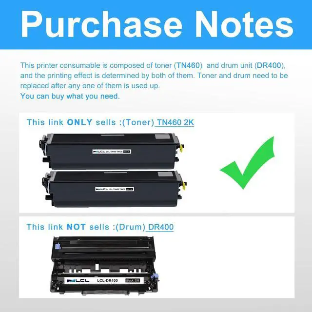 Reliable Quality: LCL TN460 cartridge uses high quality toner, toner particle size distribution, good mobility, high transfer rate, resulting in a clear image and high gloss print effect; Printing efficiency is high, waste powder rate is low, so as to ensure sufficient page yield.