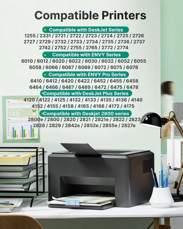 Compatibility: Compatible for hp 67 ink cartridges black/color combo pack work for DeskJet 1255, 2700, 2755, 2755e, 2710e, 2720e, 2721e, 2722, 2722e, 2723e, 2724, 2725, 2732, 2742e, 2752e, 4100 4100e, 4110e, 4120e, 4121e, 4122e, 4123e, 4130e, 4132e, 4133e, 4152e, 4155e, 4158e; Plus 4122, 4132, 4155, ENVY 6000 6010e, 6020e, 6022e, 6030e, 6032e, 6034e, 6050e, 6052e, 6055, 6055e, 6065e, 6075, 6075e, ENVY 6400 6420e, 6422e, 6430e, 6432e, 6450e, 6452e, 6455e, 6458e, 6475e, Pro 6455, 6458, 6475 ^^