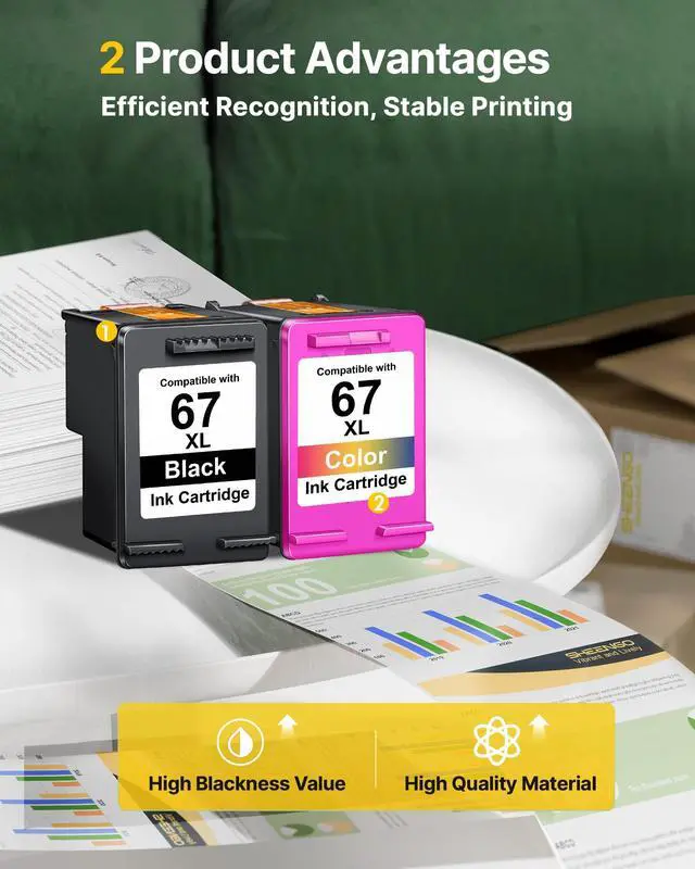 Chip Upgrade: Use for hp 67 ink cartridges black/color combo pack 67xl have been updated with the latest chips (Sep. 2025), ensuring perfect compatibility with your printer and delivering premium printing performance.