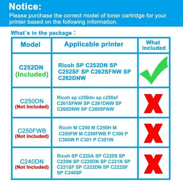 ^^ Compatible Printers: Replacement for Ricoh SP C252DN C252SF C262SFNW C262DNW ^^