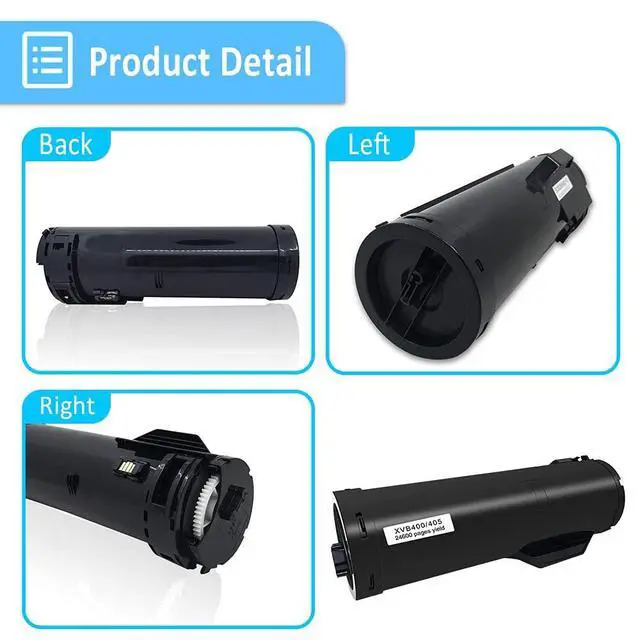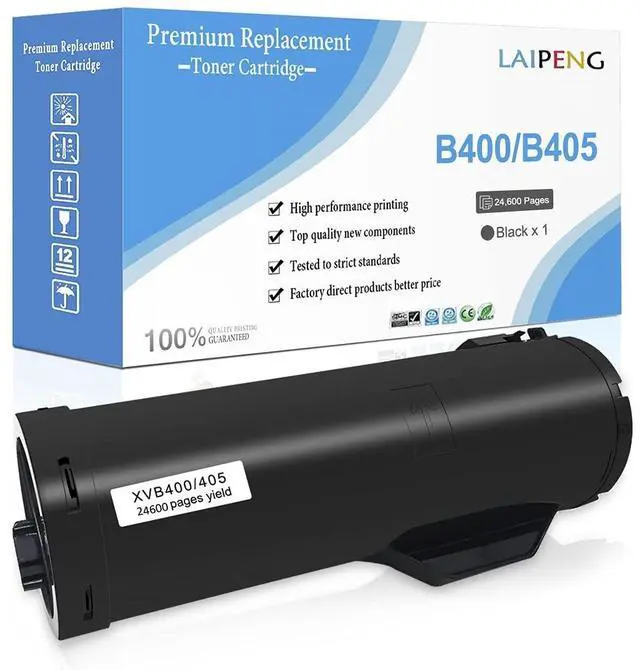 Compatible with Printers Compatible for use in Xerox VersaLink B400 B400n B400dn B405 B405dn B400/N B400/DN B405/N B405/DN printer series. ^^ What You Will Get 1 pack compatible toner cartridge B400 B405 black color. Page Yield Extra High capacity 24600 pages at 5% coverage, A4 paper, letter. (ISO/IEC standard). ^^ High Performance We provide the best printing effect for users like the original toner. The image resolution is clear, and has strong layers. The copies look beautiful. The color is uniform, clear and comfortable. ^^ Quality Material We use high quality toner from Japan, the toner is pure, fresh, natural and odorless.