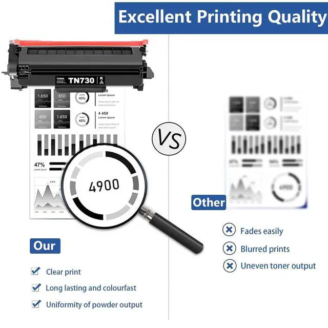 High Page Yield: Per TN-730 TN730 black toner cartridge can print 1, 500 Pages at 5%, Superior yield of 25% over standard toner cartridges ^^ Strict