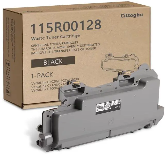 The product includes - 1 Pack 115R00128 Black Waste Toner Cartridge ^^ Pages Yield - C7020/C7030 Waste Toner Cartridge Black up to 31000 pages, with a coverage rate of 5% (Letter/A4) ^^ Applicable printer - VersaLink C7020 C7030 C7000 C7025 C7000N C7000DN C7120 C7125 C7130 ^^ Strong compatibility - The cartridge has high compatibility and can be used for various brands and models of printers, perfectly matching the printer structure and making it easier to identify ^^ Providing print quality comparable to the original factory while significantly reducing operating costs, it is the ideal choice for your office, school, government agency, or printing service provider
