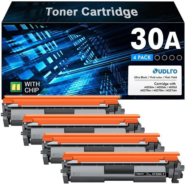 High Performance Products: 4 new 30a toner cartridge black CF230a. ^^ The replacement for hp 30a black toner cartridge creates rich black and prints up to 1, 600 pages at 5% Coverage.