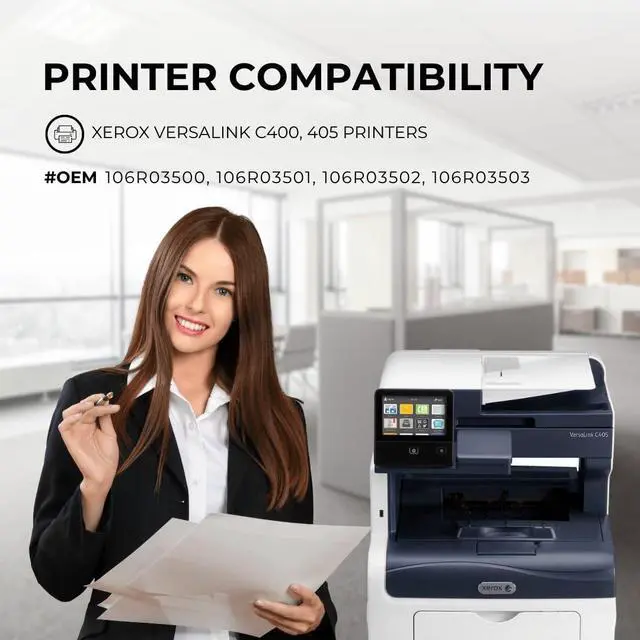 PRINTS: Engineered for fast-drying, smudge-resistant output, this high-yield VersaLink toner cartridge ensures vivid color, sharp text, and fade-resistant results from the first page to the last. Ideal for business-grade documents, hospital forms, or school reports, this compatible Xerox toner fits seamlessly into Xerox VersaLink C400 and C405 printers, delivering professional quality every time without streaks or smudges. ^^