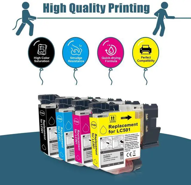 ^^ Excellent Performance: Compatible replacements for brother lc-501 ink cartridges delivers streak-free documents with razor-sharp text and photo-grade color vibrancy.