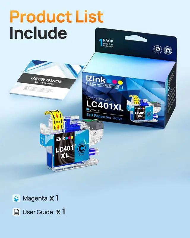 Package Contents: 1 x User Guide and 1 Cyan LC401XL ink cartridges ^^