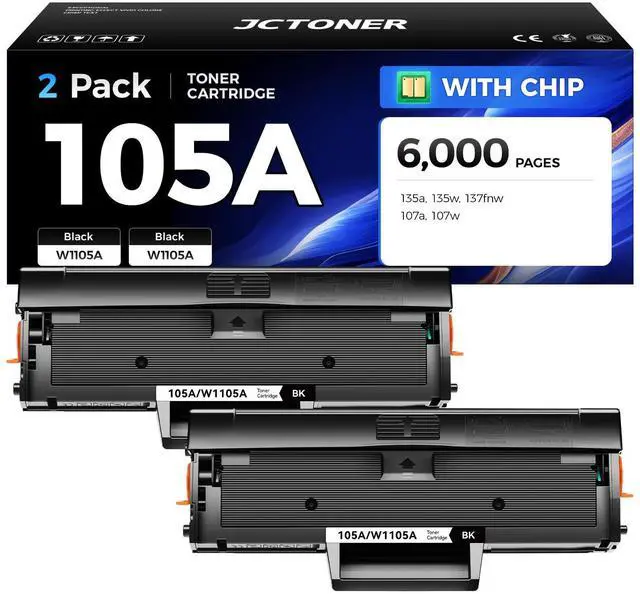 Item Name: JCTONER Compatible Replacement for 105A W1105A black toner cartridge (with chip).