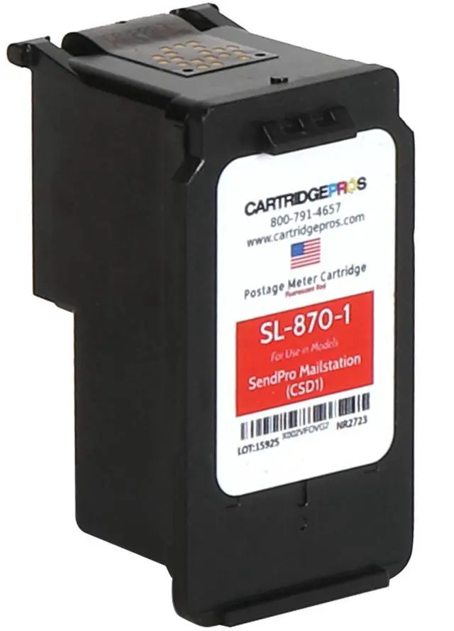 Made in the USA - Cartridge Pros Brand Red Ink Cartridge SL-870-1 Replacement for New SendPro Mailstation (CSD1) Postage Machines.