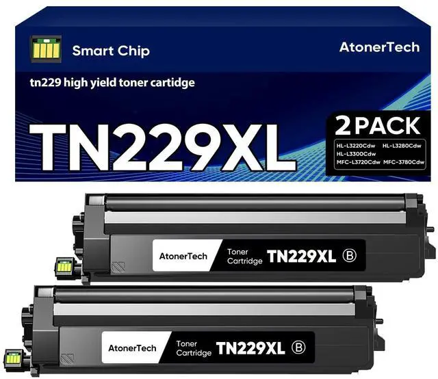 Wide Compatibility: AtonerTech 2 Black TN229 TN229XL toner cartridge compatible Replacement with MFC-L3780CDW, HL-L3280CDW, HL-L3220CDW, MFC-L3720CDW, and HL-L3295CDW.
