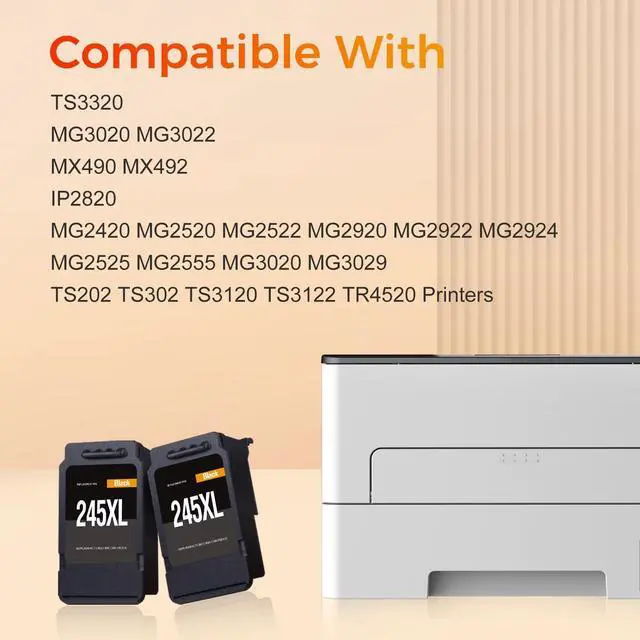 : For canon 245XL black ink cartridge work perfect with Canon Pixma MX490 MX492 TR4520 TR4522 TR4500 MG2522 MG2522 MG2420 MG2500 MG2525 MG2920 MG2922 MG2924 MG3020 MG3022 TS202 TS302 TS3100 TS3120 TS3122 TS3300 TS3320 TS3322 IP2820 Black printer ink cartridges ^^: Each cartridge for Canon 245XL black ink has been equipped with the latest chip, which has been rigorously tested to ensure that each Canon PG-245XL PG 245 XL black ink cartridge can be and used by the MX490 printer.