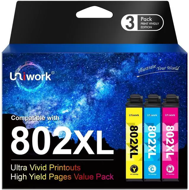 Ink Cartridges Combo Pack: 1 Cyan 802XL 802 Ink Cartridge, 1 Magenta 802XL 802 Ink Cartridge, 1 Yellow 802XL 802 Ink Cartridge ^^ Our Remanufactured 802XL 802 XL Ink Cartridge Combo Pack Replacement For Epson 802XL 802 Ink Cartridges Produce Brilliant Colors And Sharp Black Prints