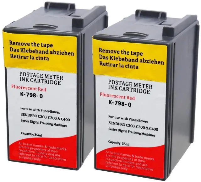 2 Pack SL-798-0 Red Ink Cartridge Replacement for 798-0 Fluorescent Red Ink, Compatible with Postage Meters for Sendpro C200, C300, and C400 Series
