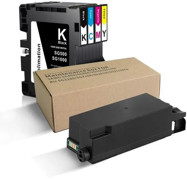 GC41 Maintenance Box BundlingCompatible Printers: Compatible for Sawgrass Virtuoso SG500 SG1000 PrintersInstallation Instructions: For the better printing performance, please clean the print head for 1-2 times after installing the new ink cartridges. If the ink cartridges would not be recognized by your printer at the first time, please try to turn off the printer 30 second and then turn it on and re-install the cartridges again. Please do not get out the old cartridge before replacing the new one to prevent the print head from drying and clogging.