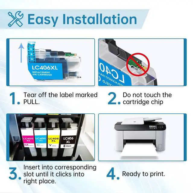 Newly Upgrade Chips: LC406 XL ink compatible for Brother LC406 ink cartridges are equipped with the latest upgraded chips, no need to worry about compatibility issues, Simply insert and print, easily recognized and allow you to track the ink capacity accurately ^^