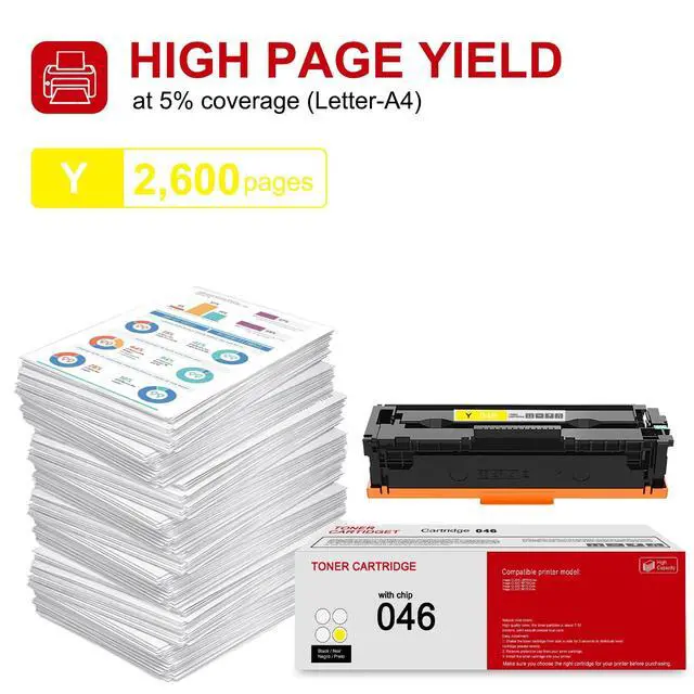 ^^ Page Yield: 2, 600 pages per 046 Yellow Toner Cartridge at 5% coverage. ^^ Compatible for