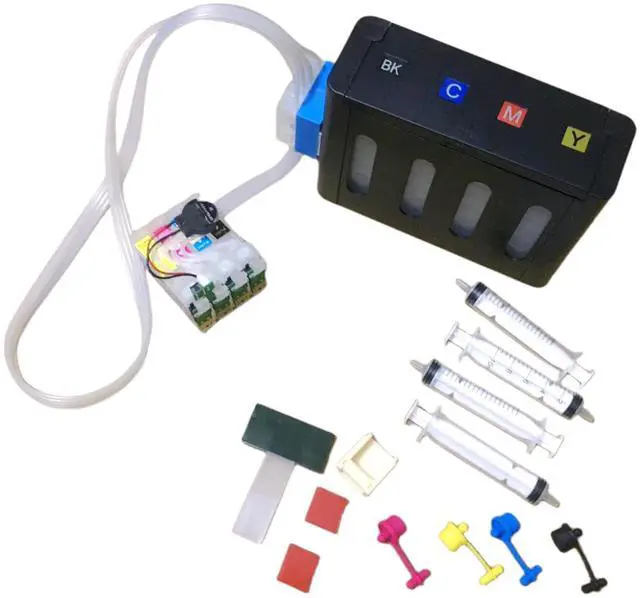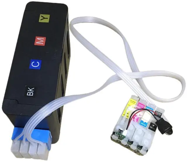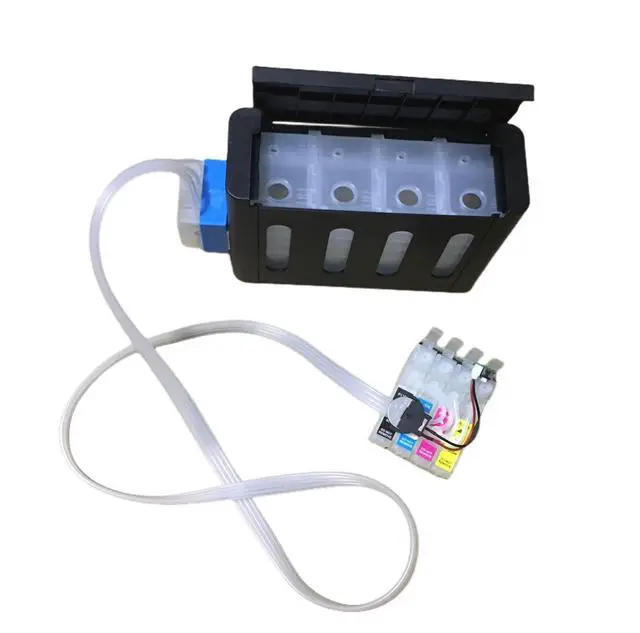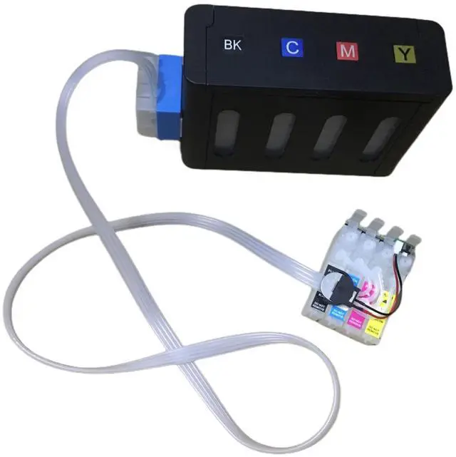 Empty cartridge Kit connected with ink reservoir and installation accessories.