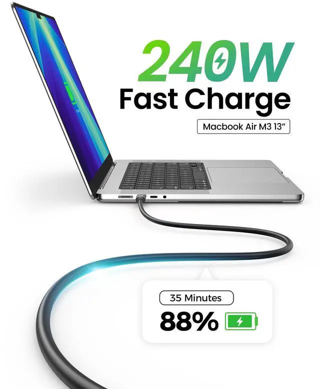 240W PD3.1With a 48V/5A power delivery rating, 240W for Thunderbolt 5 cable can support up to 240W of power delivery, enabling fast charging of compatible devices.