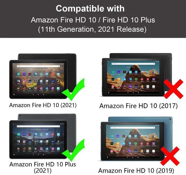 Compatibility: Specifically designed for All-New kindle Fire HD 10 / Fire HD 10 Plus Tablet ( 10.1 inch Display, 11th Generation, 2021 Release), Not compatible with any other tablet, Please Check Your Device Model Before Purchase. Why You Choose Us1. Made of High end PU leather, features shockproof, protective smooth outer casing and sturdy exterior with soft microfiber interior keeps your tablet screen safe. 2. Viewing angle frees your hands from other activities and avoids any joint pain, and enables you to type or draw comfortably. 3. Provide auto sleep/wake, Open the case to wake up and close the case to shut off, Saved power. 4. Lightweight case design protects your tablet without adding bulk, so it is easy to carry. 5. Designed with 4 delicate card slots inside for you to carry your necessary cards. There is a flexible pencil holder at the edge of the shell for keeping your stylus in place (Stylus is not included). 6. Easy Access to All Buttons. Ultra compact and precisely cut to preserve full access to all buttons without taking off the case like charging, listening to music, vedios etc.
