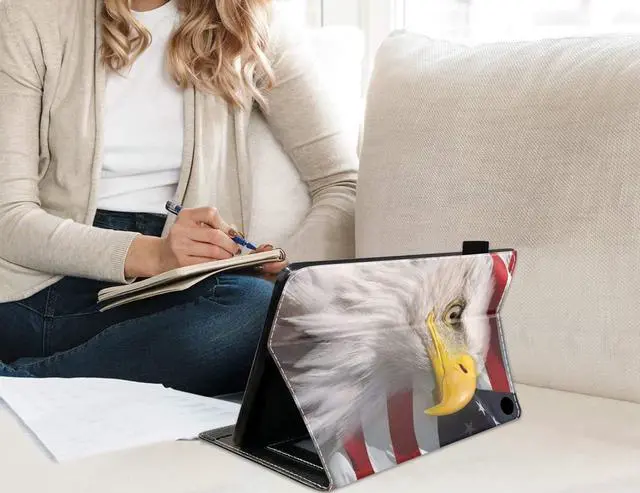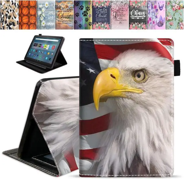 DEHJYYIJUY Case for All-New Kindle Fire HD 10/Fire HD 10 Plus Tablet (11th Generation, 2021 Release), Premium PU Leather Cover with Card Slot & Pencil Holder, Patriotic American Flag Bald Eagle