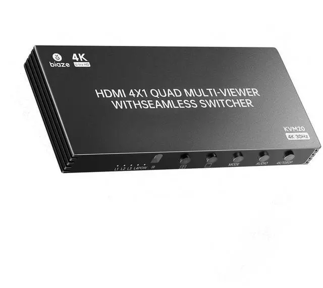 4-in-1 HDMI Switch Share One Display Across Four Devices This 4x1 HDMI switch allows you to connect 4 HDMI sources (e. g., PS5, Xbox, PC, or streaming devices) to a single monitor or TV. Seamlessly switch between 4 display modes, including Quad View (4 equal screens), Full Screen, PIP Mode (1 large + 3 small), and Dual Screen (split left/right)perfect for gaming, multitasking, or surveillance. ^^ 4K Ultra HD & 3D Support Crystal-Clear Visuals Experience stunning 4K@30Hz resolution and 3D compatibility with zero lag, ghosting, or flickering.
