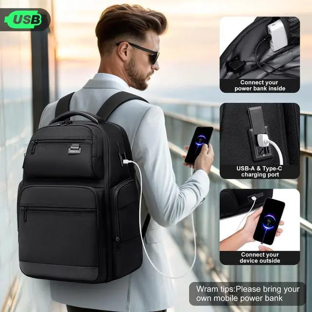 Design ]: FENRUIEN Smart backpack features a next-generation USB charging port with a built-in charging cable. Charge your phone anytime with ease. Please note that this backpack doesn't power bank itself. Please prepare your own power bank