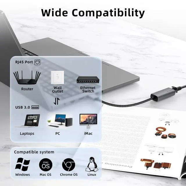 (Please Note: To achieve 2.5 Gbps, make sure to use CAT6 or higher Ethernet cables. ) ^^ [ 2.5G bps Ethernet Adapter Wide Compatibility] Powered by the RTL8156 chip, this USBC RJ-45 Lan Adapter supports 2.5G b/1000M/100M/10Mbps Base-T networks, and compatible with Windows, macOS, ChromeOS, and Linux. It's perfect for devices with USB-C or Thunderbolt 3/4 ports, such as MacBook Pro/Air, iMac, Surface, Dell XPS, Chromebook, ThinkPad. ^^ [USB 3.0 to Ethernet Adapter] The USB Ethernet adapter serves as medium between your USB A laptops and RJ45 Ethernet cable, providing stable fast network connection up to 1Gbps when surfing Internet, downloading movies, joining online conference. Supports 10/100/1000 Mbps at fast USB 3.0 speeds. Wired connection through Ethernet adapter for laptop ensures more reliable online performance.